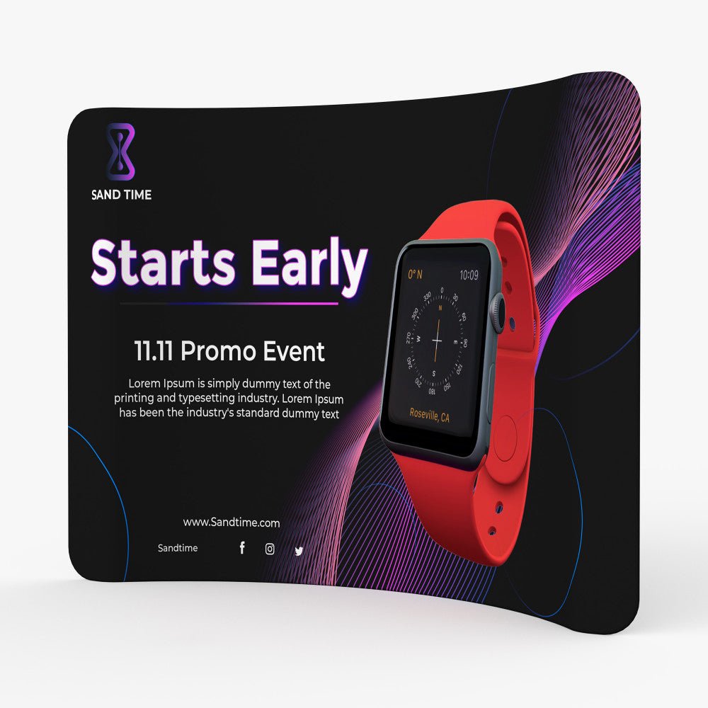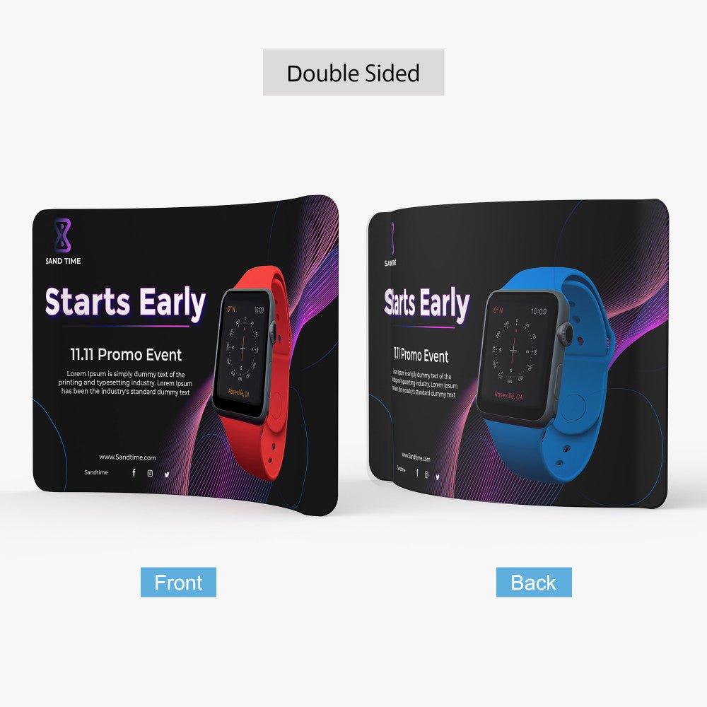 Our tension displays consist of a lightweight but durable aluminum hardware and a fabric dye sublimated print. The hardware is inserted inside the print, much like a pillow into a pillowcase. The fabric print is stretched tight across the frame and zipped close.
