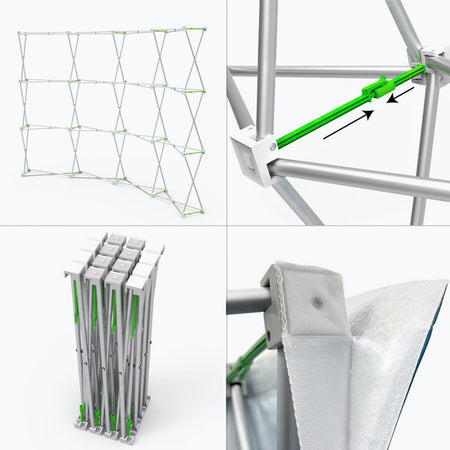 The pop-up display is so quick and easy to assemble with its pop-up mechanism. Attached fabric graphic on to the pop-up frame with Velcro, and folded along with the frame for storage or transport. When your next show comes around, simply expand the pop-up frame, and your graphic will expands with it.