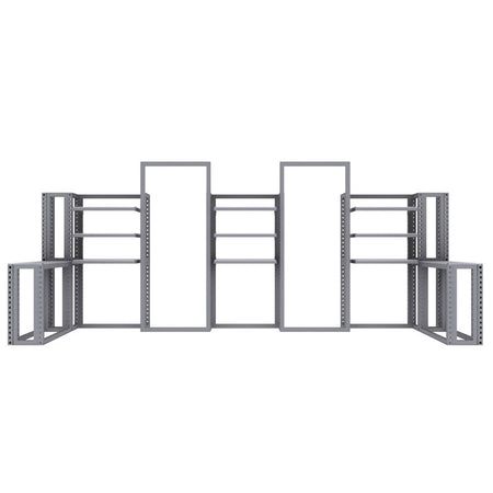 Modco Modular Display 3 is a three-dimensional 20’ x 10’ pre-designed exhibit booth. Stylish and lively, this booth is built using tool-free perforated modular aluminum frames. Multiple size frames connect using toolless pin connectors. There is plenty of backwall shelving and two countertops on each end to showcase your products. Perforations are completely covered for a flawless finish.