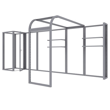 Modco Modular Display 4 is a three-dimensional 20’ x 10’ pre-designed exhibit booth, ideal for a peninsula or island style booth space. Stylish and lively, this booth is built using tool-free perforated modular aluminum frames. Multiple size frames connect using toolless pin connectors. Perforations are completely covered for a flawless finish.