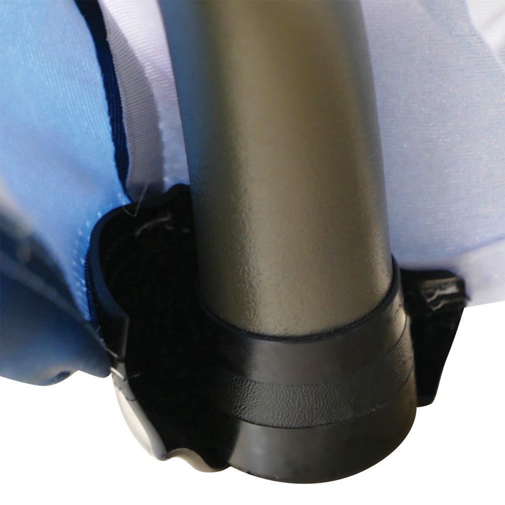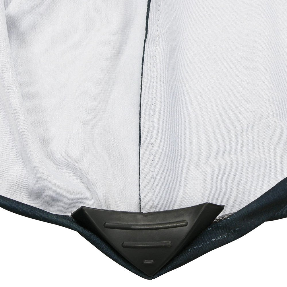 This option is 4-sided, fully covering the front, back and sides of the table. Our Stretch Table Throws fit tapered and taut around the table and secures under its legs.
