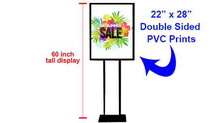 Our floorstanding Poster Stand accommodates a 22" x 28" drop in rigid graphic and stands 60" tall. This sign holder is perfect for retail advertising, commonly seen in front or mid-store. Our direct print double-sided PVC graphics easily drop in the frame for quick display.