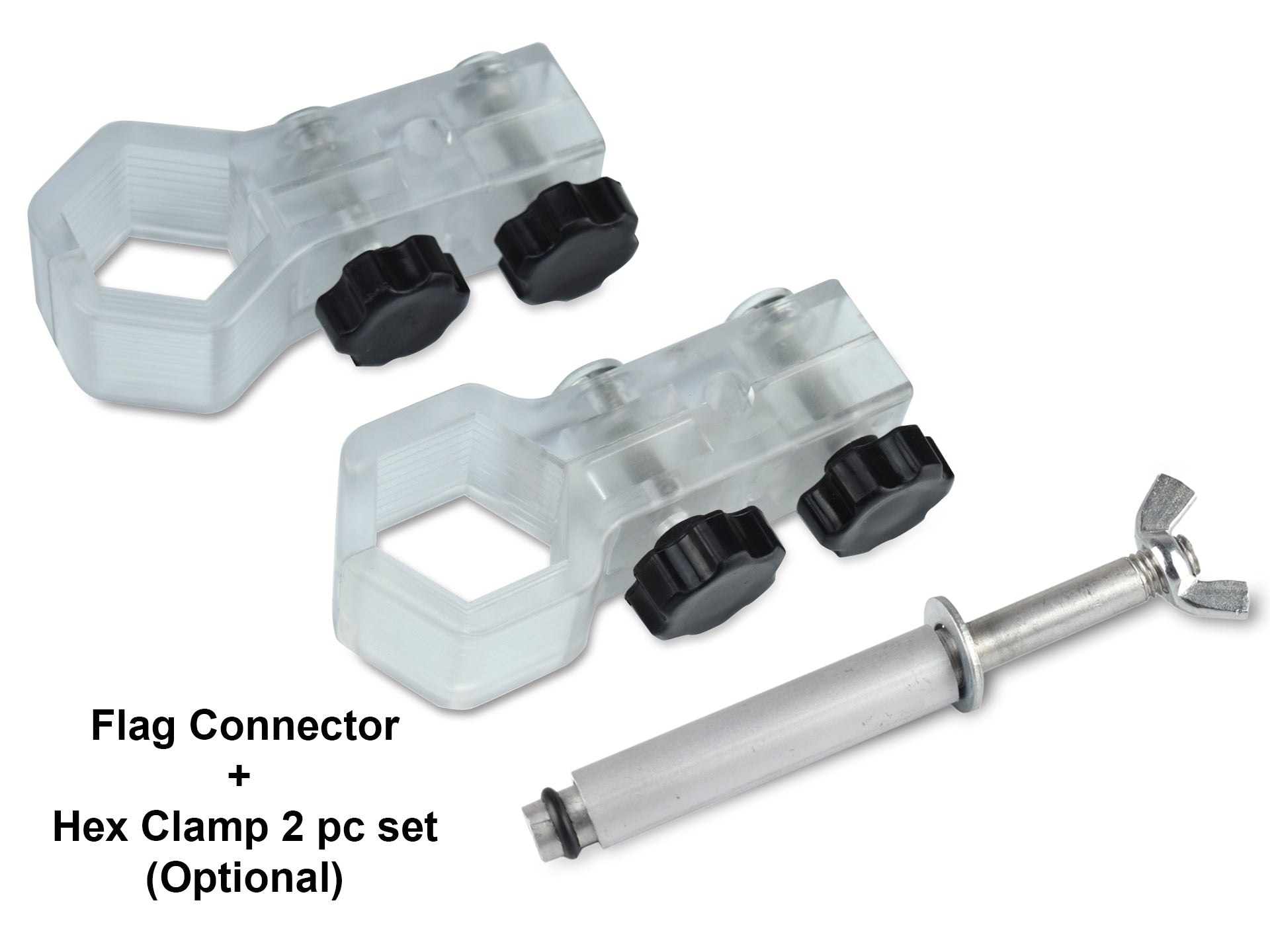 Take your Event Tent to new heights with an Advertising Flag or two...or four. Born at beach events there isn't a more dynamic branding solution than a four post tent fully adorned with flags rippling in the wind. Full color Fabric Dye-Sub flags are digitally printed single or double-sided. Our Flag Connectors are specifically engineered hex clamps that snugly fit with our heavy duty tent hardware to keep those flags flying all day long.